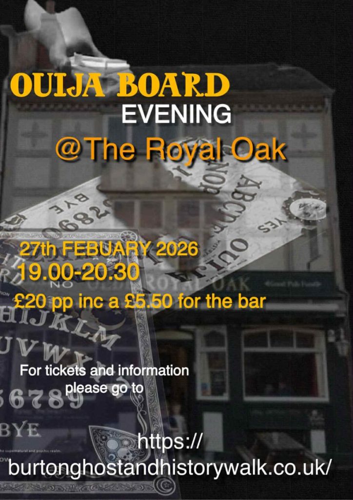 TO BOOK THE Ouija board evening 27th February 27th 7 to 8.30pm press on picture above